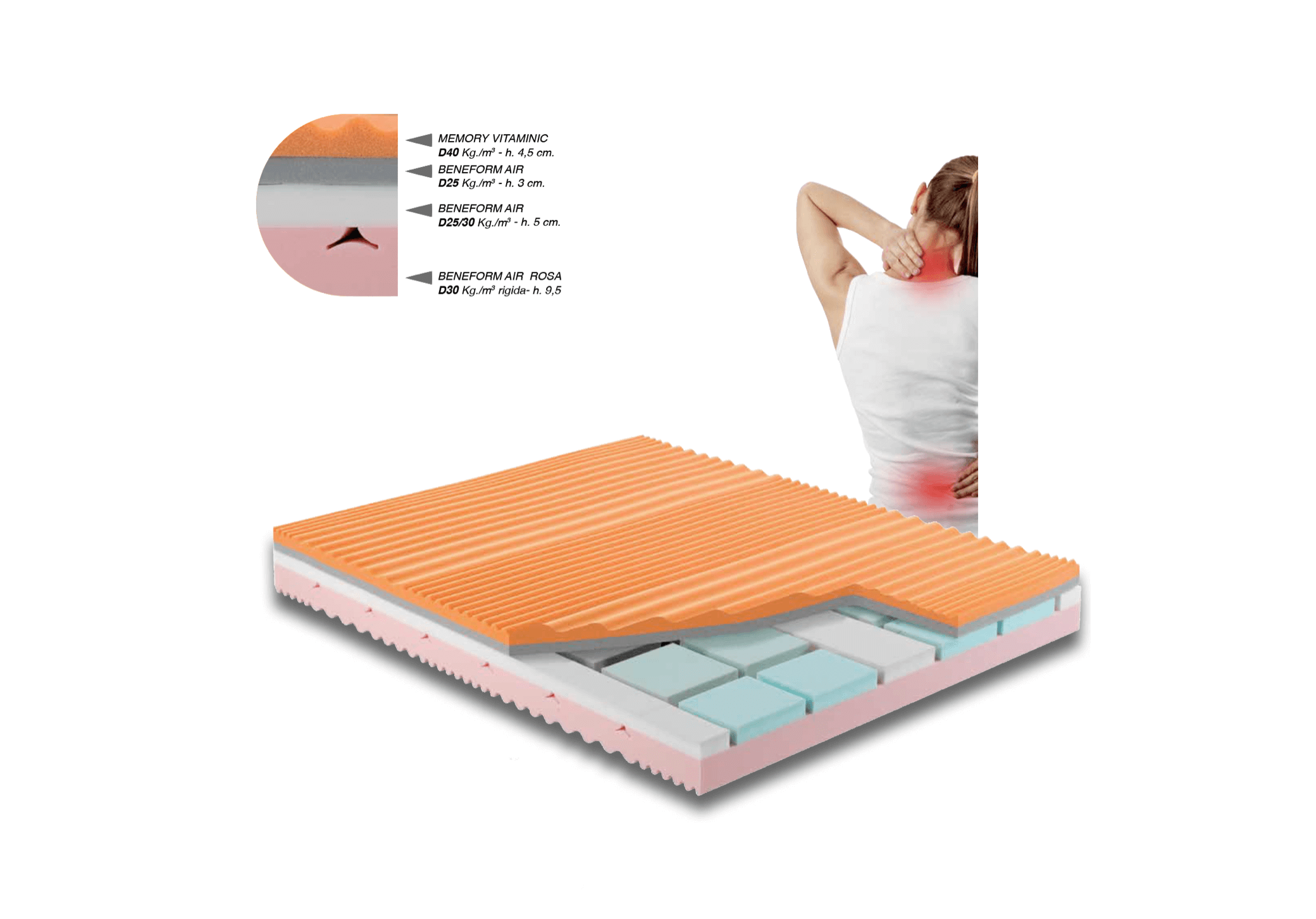 La parte superiore in Beneform Memory Vitaminic ad elevato effetto memoria, con l’aggiunta di essenza all’arancia per un riposo rinvigorente.